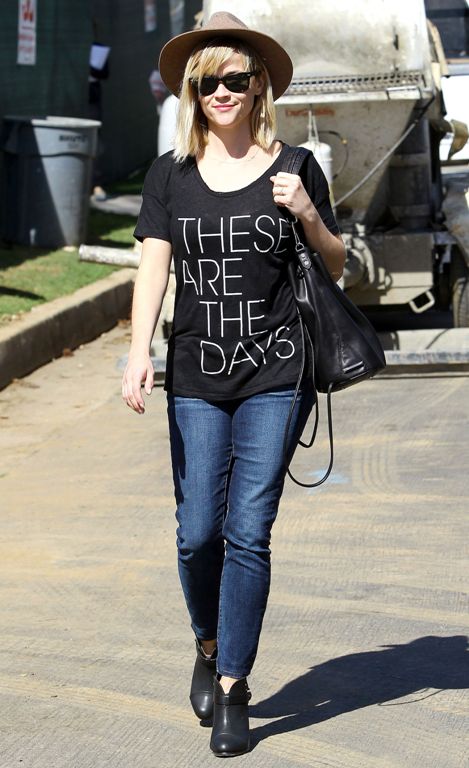 Актриса Риз Уизерспун в Лос-Анджелесе была замечена в черной футболке и джинсах. Как и Наоми Кэмпбелл, Риз дополнила свой образ шляпкой.