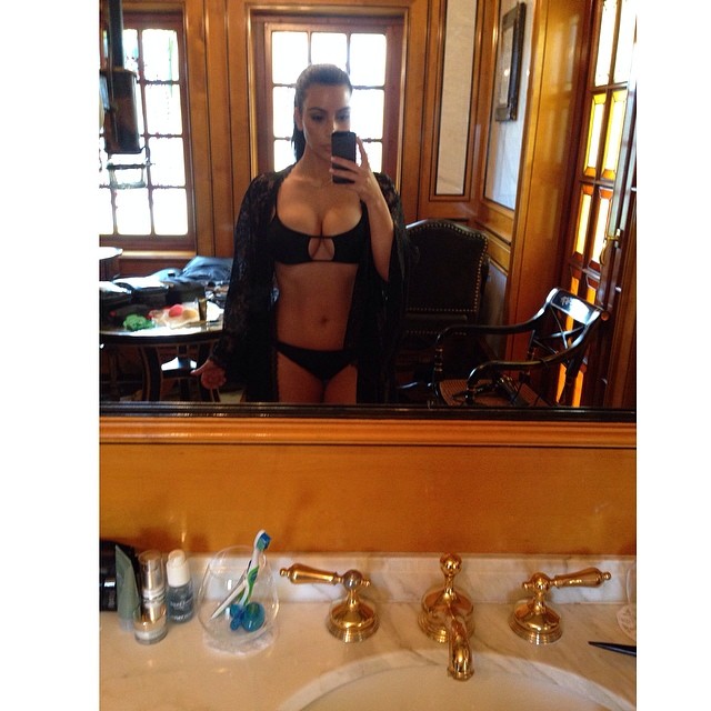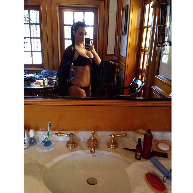 Результат этого эксперимента Ким выложила в своем микроблоге, подписав фото: «Вот украла бикини у Кайли... Она не получит его обратно».