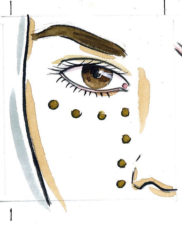 Шаг 1: после основы под макияж точечно под глаза, по бокам носа и на проблемные зоны наносится корректор на лицо.