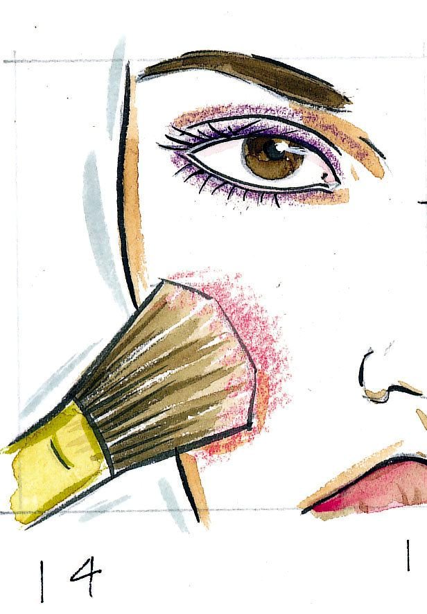 Шаг 4: выберите холодный розовый оттенок румян и нанесите на щёки.