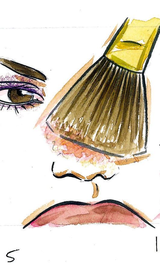 Шаг 5: придайте яркость лицу рассыпчатой пудрой при помощи большой кисти.