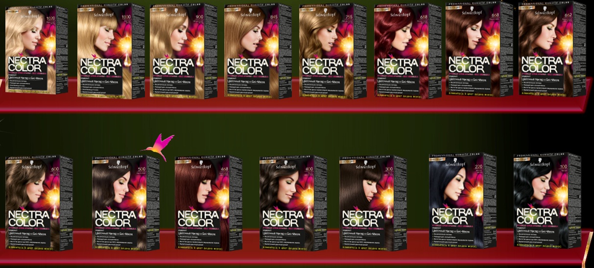 | Приятным дополнением к процедуре станет тонкий цветочный аромат, который раскрывается во время окрашивания. Известно, что женщины уделяют много внимания внешнему виду волос, но при этом часто не довольны их состоянием. Как показало исследование потребителей*, 30% женщин жалуются на секущиеся кончики волос, 40% считают свои волосы ломкими или поврежденными, а 80% ожидают, что волосы будут выглядеть лучше после окрашивания, станут более блестящими. Но есть и еще одно пожелание, свойственное исключительно женщинам: они хотят получать наслаждение от процесса ухода за собой! Формула с Цветочным Нектаром и Маслами разглаживает поверхность каждого волоса, улучшая отражательную способность волос для их глянцевого блеска, позволяет получить роскошный цвет и полное закрашивание седины. Цветочный Нектар – это концентрат жизненной силы цветка! Он состоит из воды, естественного сахара, минералов, аминокислот, витаминов и эфирных масел. Нектар получают из цветочных эссенций, бережно извлекаемых из нектарников, находящихся в самом сердце растений. Цветочный Нектар – новейший люксовый ингредиент в косметологии и парфюмерии, кроме того, тема цветов актуальна в коллекциях ведущих фэшн-дизайнеров и марок одежды. Введение этого ингредиента в состав краски для волос стало инновационной разработкой Schwarzkopf, впервые опробованной в крем-краске Nectra Color. Тонкий аромат Nectra Color с нотками груши, экзотических фруктов и жасмина сделает окрашивание волос незабываемо приятным. Стойкая крем-краска Nectra Color очень удобна в использовании - она имеет насыщенную текстуру, благодаря чему не течет при нанесении. Также в комплект входит ухаживающий Кондиционер-Блеск с Цветочным Нектаром, маслом абрикосовой косточки и пантенолом. Он превосходно питает и улучшает состояние волос. Волосы становятся более мягкими, шелковистыми и легко расчесываются – до 90% меньше повреждений волос! Палитра оттенков стойкой крем-краски для волос Nectra Color состоит как из классических натуральных оттенков вроде Темно-каштанового (400), Каштанового (500), Светло-каштанового (600), Натурального блонда (900) и Светлого блонда (1000), так и актуальных ярких цветов, к которым относятся, например, Иссиня-черный (220), Интенсивный красный (688), Карамельный каштановый (662), Золотистый светло-русый (845) и Жемчужный блонд (1020). На сегодняшний день под маркой Nectra Color выпускается 15 роскошных оттенков: |