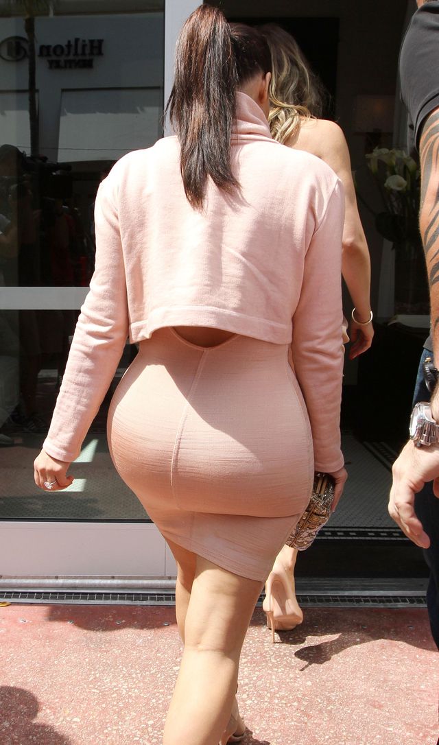 Наряд, выбранный Ким, акцентировал внимание не так на тонкой талии и шикарном бюсте, как на пятой точке звезды. Именно туда и были направлены все камеры папарацци.