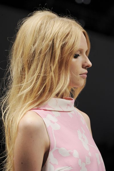 2. В моде не только объем, но и глубокий пробор – укладывай завитые волосы на одну сторону. Пряди можно распушить.