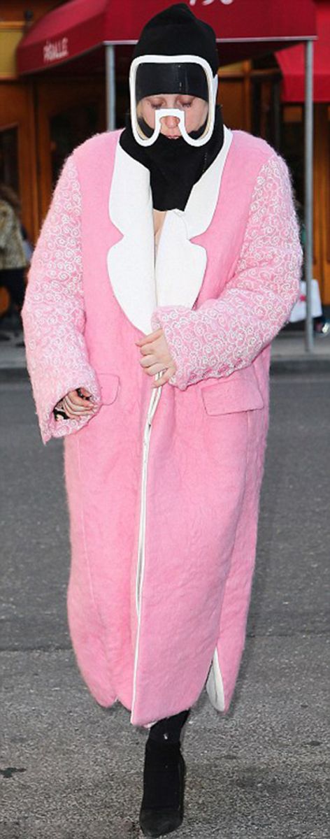И хотя объемное розовое пальто, напоминающее больше халат, и маску-очки на пол-лица трудно назвать стандартными, но все же этот образ певицы кардинально отличается от всех предыдущих. Дело в том, что на публике Леди Гага появилась без макияжа.