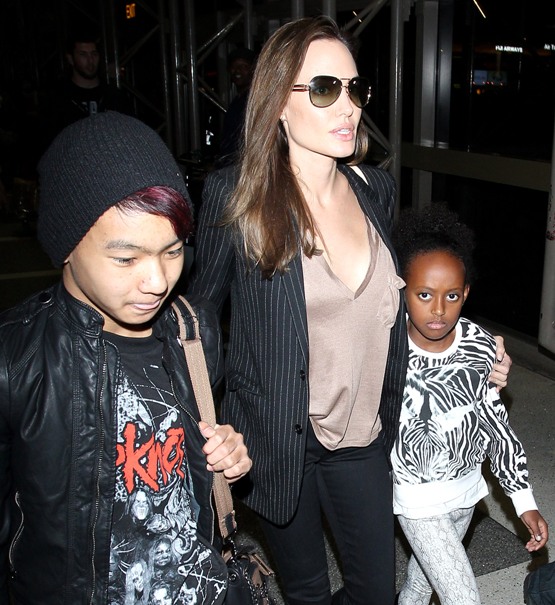 Анджелина Джоли вместе с двумя старшими детьми – сыном Мэддоксом и дочкой Захарией, была замечена в аэропорту Лос-Анджелеса. Папарацци засняли чем-то обеспокоенную и даже встревоженную Энджи.