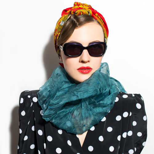 Завяжи шарф двумя объемными узлами, сместив аксессуар на бок. Будет свежо и оригинально.