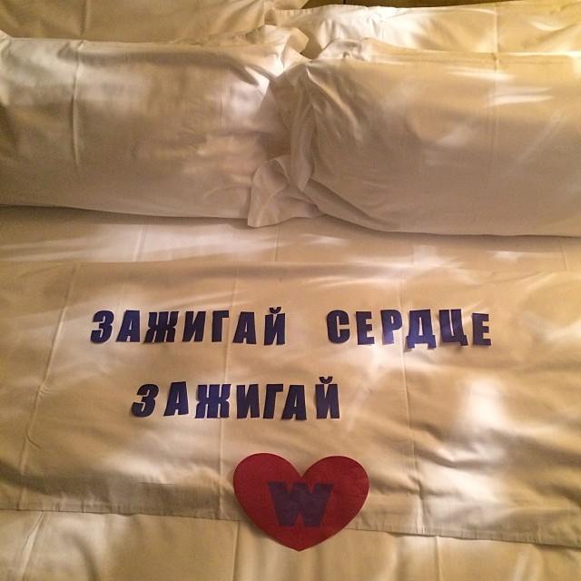 А сегодня Ани опубликовала милый снимок своей постели в отеле. На кровати персонал выложил название песни звезды «Зажигай сердце». «А так меня встречают в отелях!» – пописала фото Ани Лорак.