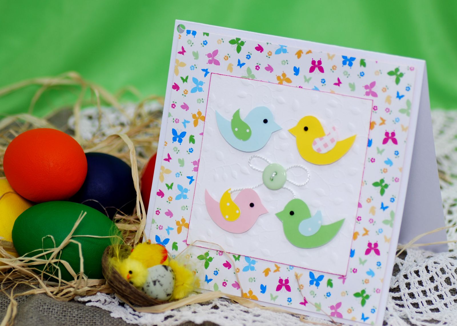 Пасхальная открытка "Пасхальные цыплята" в технике кардмейкинг