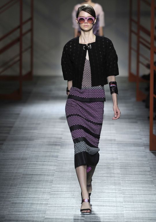 А к укороченным брюкам Missoni предлагает удлиненную куртку-жакет на одной клипсе без пуговиц.