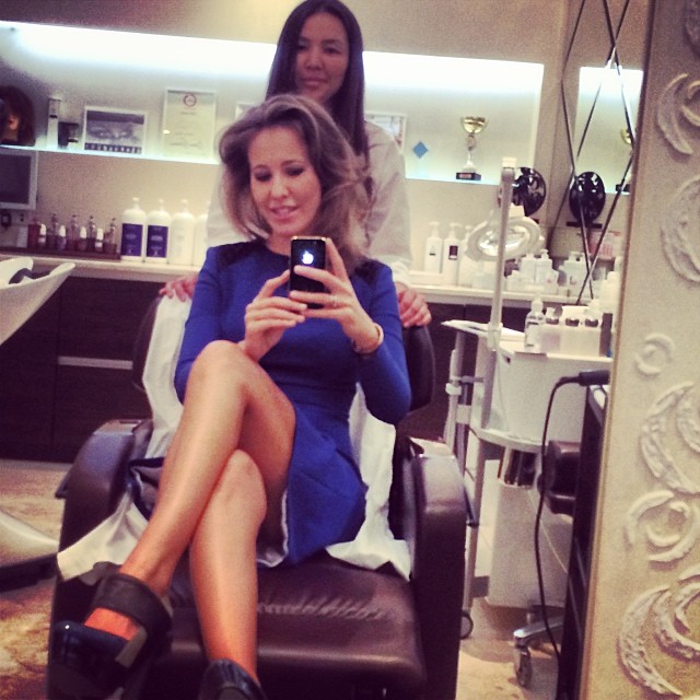 В повседневной жизни Ксюша предпочитает минимализм, как в этот раз в салоне ведущая была в синем платье на пуговицах. Наряд позволил Ксении показать преимущества своей фигуры и стройные ножки.