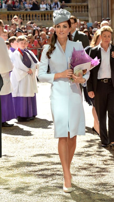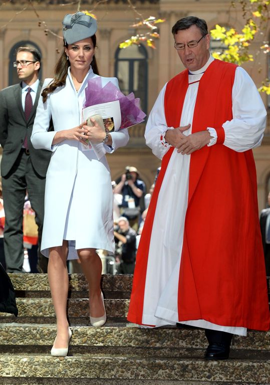 Вместе с принцем Уильямом Кейт посетила Пасхальное богослужение в соборе Сент-Эндрюс в Сиднее. И равных ей по красоте не было на этом мероприятии. Свой образ Кейт Миддлтон дополнила элегантной маленькой серой шляпкой и белыми классическими лодочками.