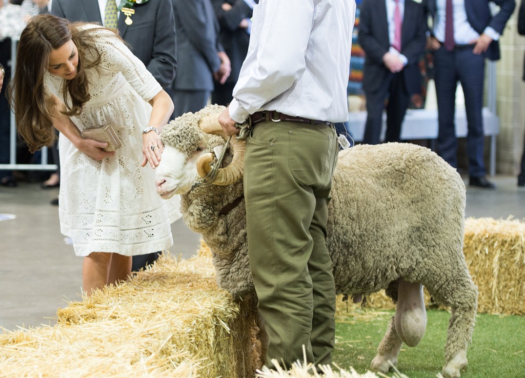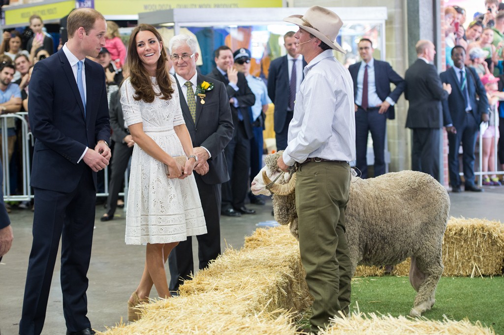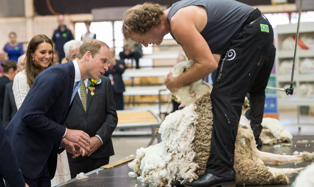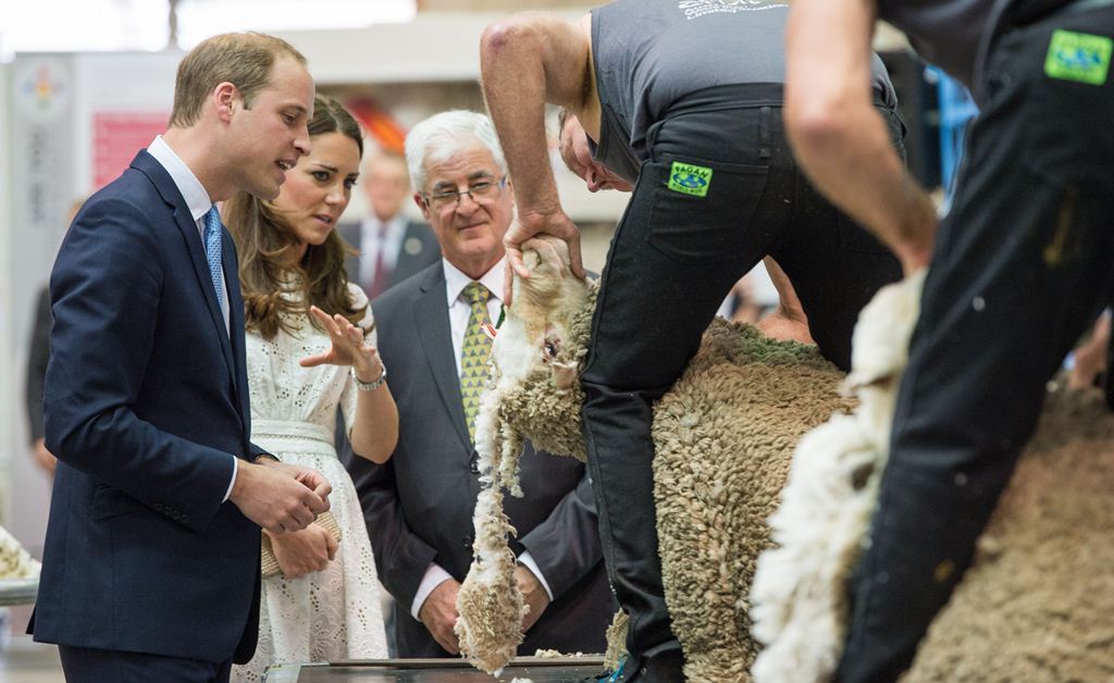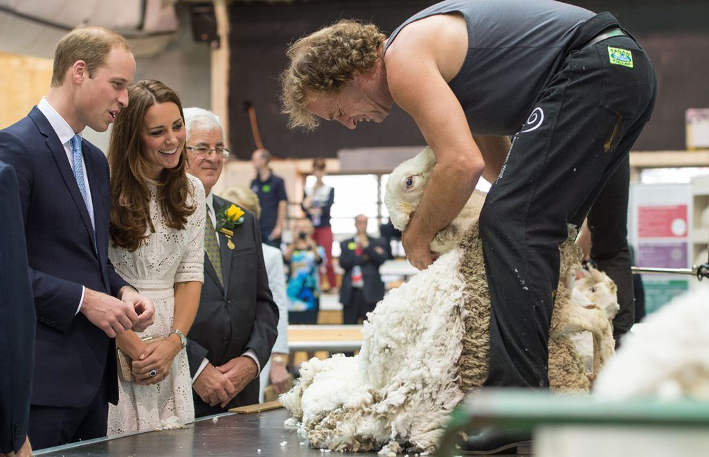 Когда королевская чета подошла к одному из фермеров, который остригал с овец, принц Уильям попросил посмотреть поближе шерсть. Так совпало, что шерсть альпаки была практически одинакового цвета с шевелюрой принца. Кейт сразу же это отметила и, вероятно, едва сдержавшись, чтобы не приложить шерсть к его голове, пошутила, что эта шерсть ему очень идет и Принцу следует обязательно сделать парик. Реакцией Уильяма была широкая улыбка, после чего он нежно обнял супругу.