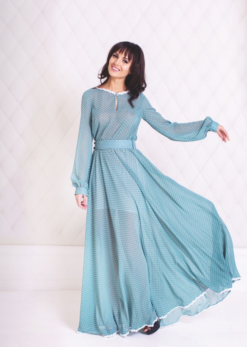 Платье в «горох» трапециевидного силуэта отлично подойдет для более официального, формального мероприятия. А для романтического вечера выбирайте длинное платье в «горошек». Не забывайте, что оно красиво сочетается с сумочкой в тон и обувью на высокой «шпильке». А вот аксессуары, говорит дизайнер, следует выбирать осторожно, ведь «горох» сам по себе – очень заметный принт.