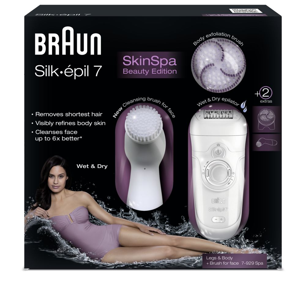 В бьюти-набор Silk-épil SkinSpa Face & Body Care входит новая щеточка для чистки лица Braun Silk-épil и инновационный прибор для тела Braun Silk-épil 7 SkinSpa, который сочетает в себе пилинг и эпиляцию. Несколько косметических процедур соединились в одном наборе для гладкости и сияния кожи, которые нельзя не заметить.