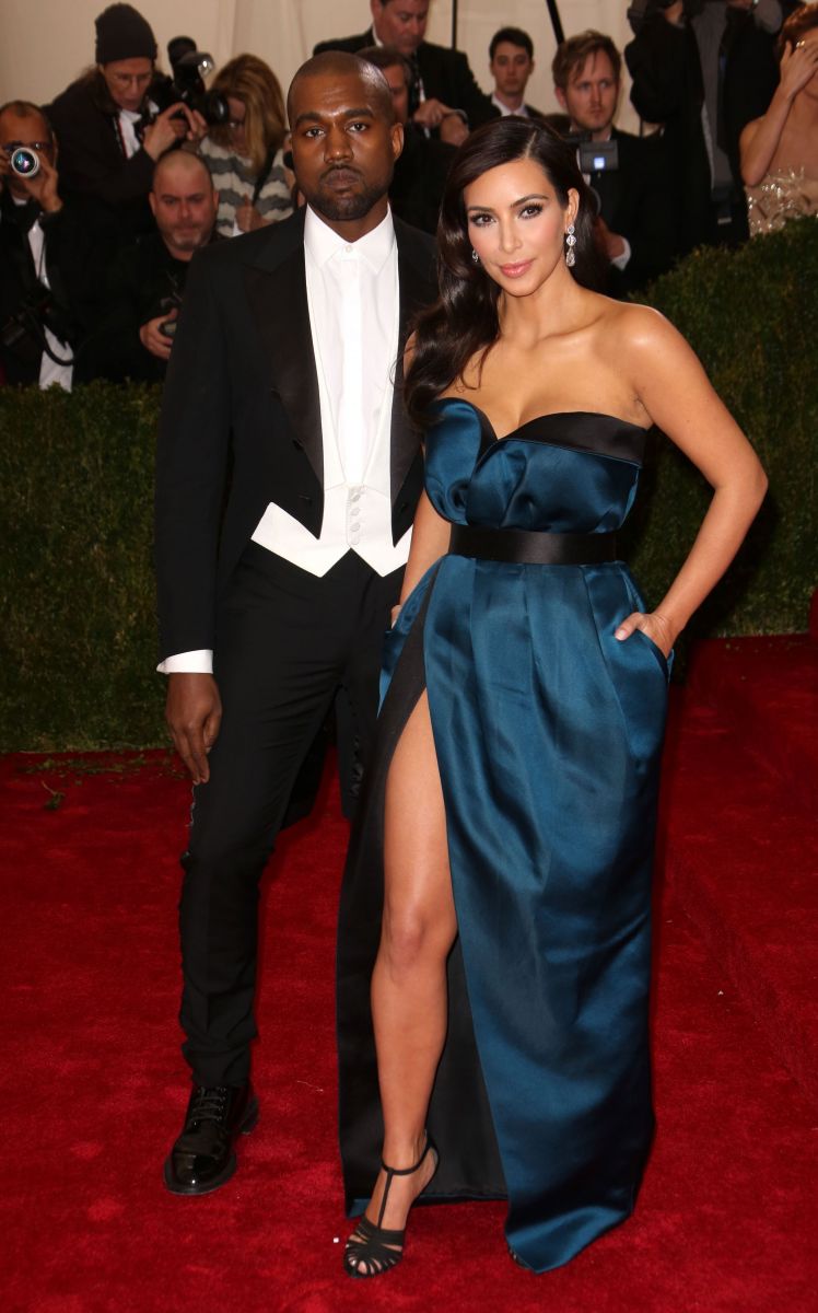 Спутница репера Канье Уэста появилась на красной дорожке в непонятном синем платье, которое более походило на штору, обернутой вокруг тела и закрепленное пояском. Выбранное Ким платье продемонстрировала белому свету не только ноги звезды, но и ее нижнее белье.
