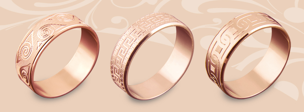 Греческие узоры на обручальных кольцах символизируют то, что перед молодоженами лежит длинный путь, по которому им суждено идти вместе, помогая друг другу в духовном росте. Каждый элемент орнамента связан со следующим, идеально дополняя друг друга.
