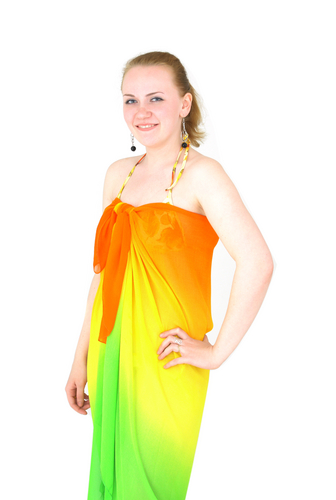 Удобный и практичный вариант, который превращает парео в сарафан, получается при завязывании за шею.