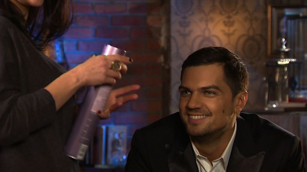 И он мужественно терпел все процедуры, связанные с подготовкой к съемочному процессу. В том числе укладку волос и макияж.
