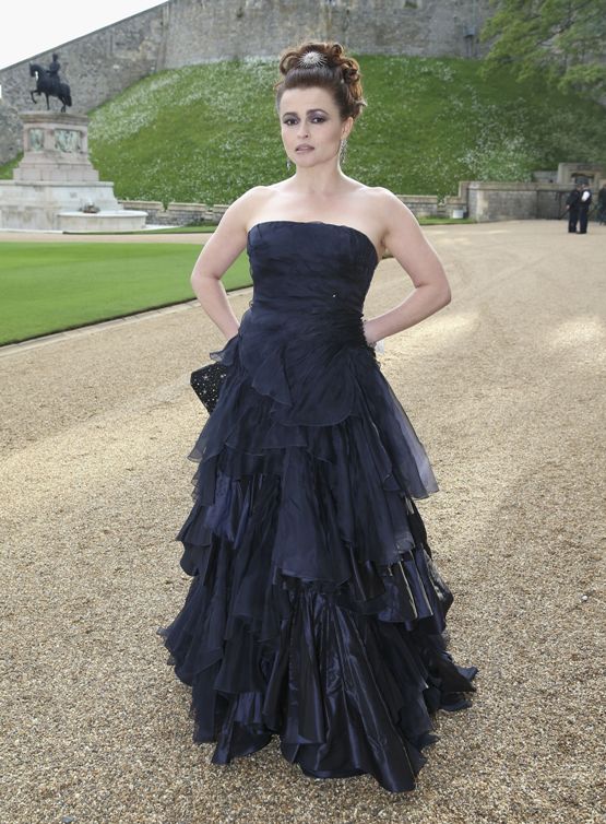 Актриса Хелена Бонэм Картер пришла на королевскую вечеринку в черном пышном платье в пол.