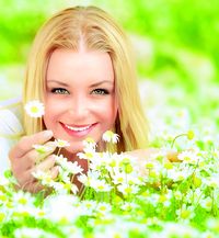 Кожа с теплым подтоном, белокурые с золотинкой волосы, светлые глаза.