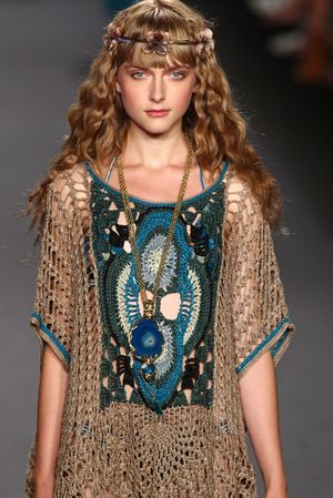 Завей волосы плойкой, оставив прямую челку. Повяжи тонкую повязку с цветами (как у хиппи).
