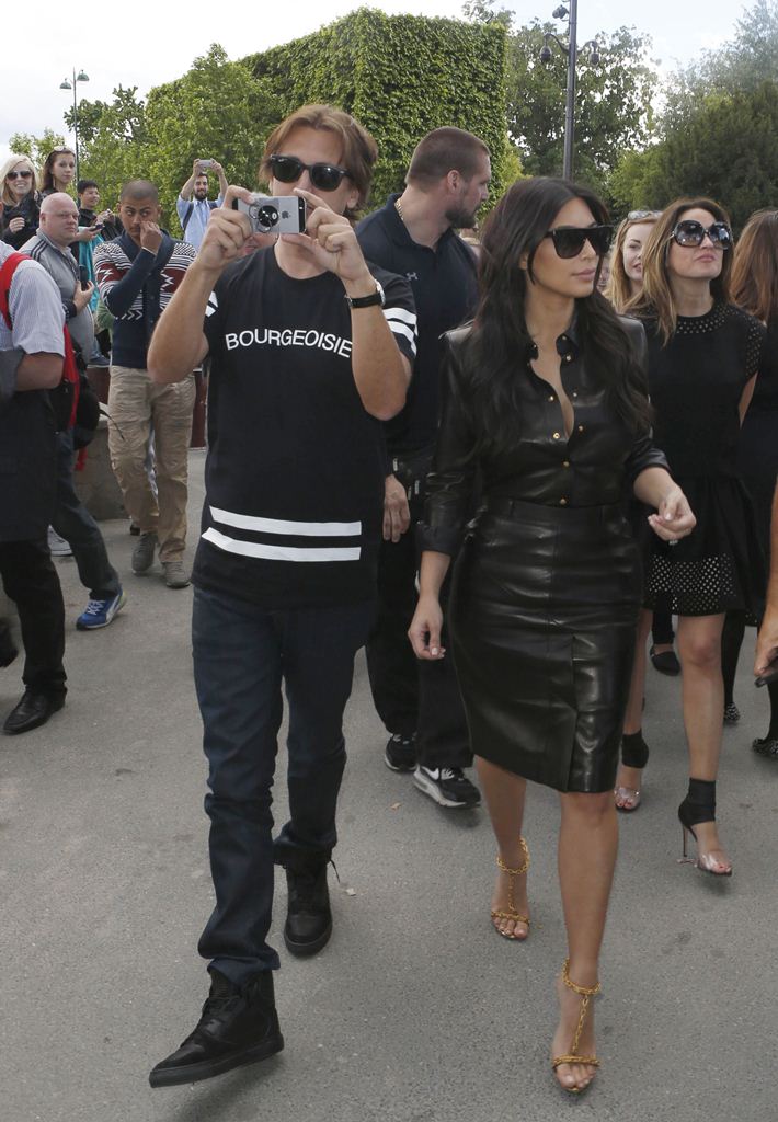 Для прогулки по Парижу Ким Кардашян выбрала стильное черное кожаное платье, идеально подчеркивающее фигуру.