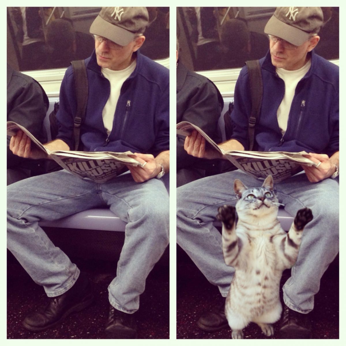 А вот сайт savingroomforcats.tumblr.com сделал удивительное открытие: мужчины знают, что в вагоне где-то есть симпатичный жирный котик, которому необходимо место. Вот и садятся так, чтобы занять место для животного.