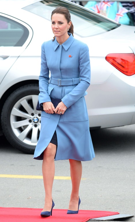 В этот раз в центре внимания оказался образ Кейт Миддлтон, созданный при помощи платья-пальто от культового Alexander MCqueen. Небесно-голубой наряд очень к лицу Кейт Миддлтон. Фасон удачный и выгодно подчеркивает стройную фигуру красавицы.