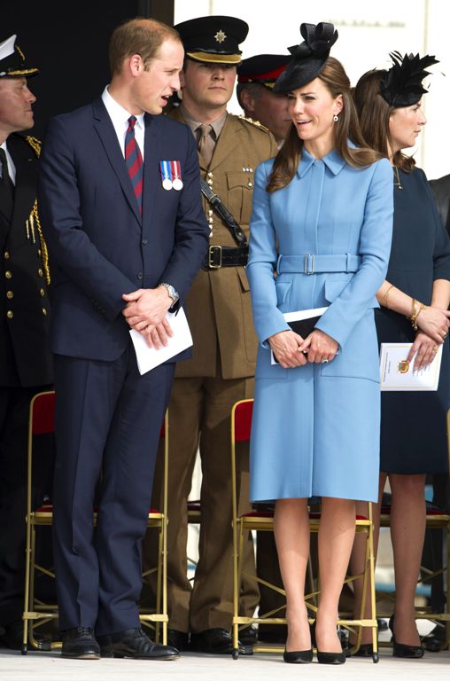 И вот снова Кейт предпочла этот наряд для официальных мероприятий в Нормандии по случаю 70-й годовщины высадки союзников. Разница в образах лишь в том, что в этот раз Кейт дополнила свой образ черными клатчем и шляпкой.