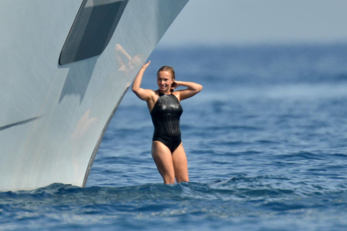 Фотографии сделаны во время отдыха актрисы и украинского боксера в компании друзей. Хайден предпочла закрытый купальник, но животик скрыть ей уже не удалось.
