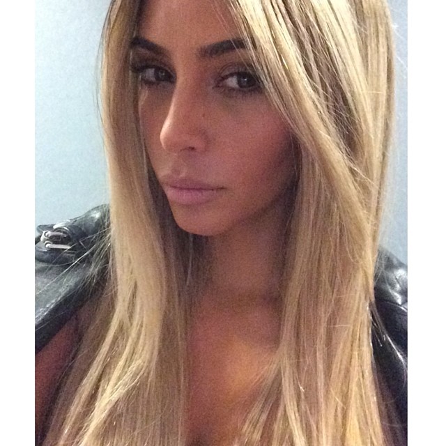 Ким Кардашян опубликовала в своем микроблоге фотографии, сделанные буквально на днях. На них красотку не узнать: смуглявая брюнетка стала блондинкой.