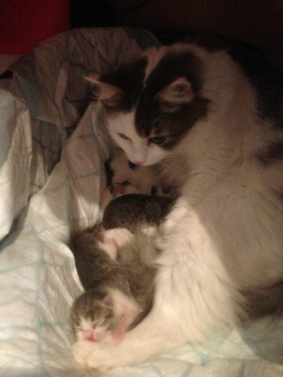 Сегодня ночью у Дуни родились котята – четыре маленьких трогательных комочка, для которых весь мир вокруг пока – тепло и забота кошки-мамы. Это дорогОго стоит, когда мир вокруг – тепло, забота, нежность и чувство защищенности… Как в детстве.