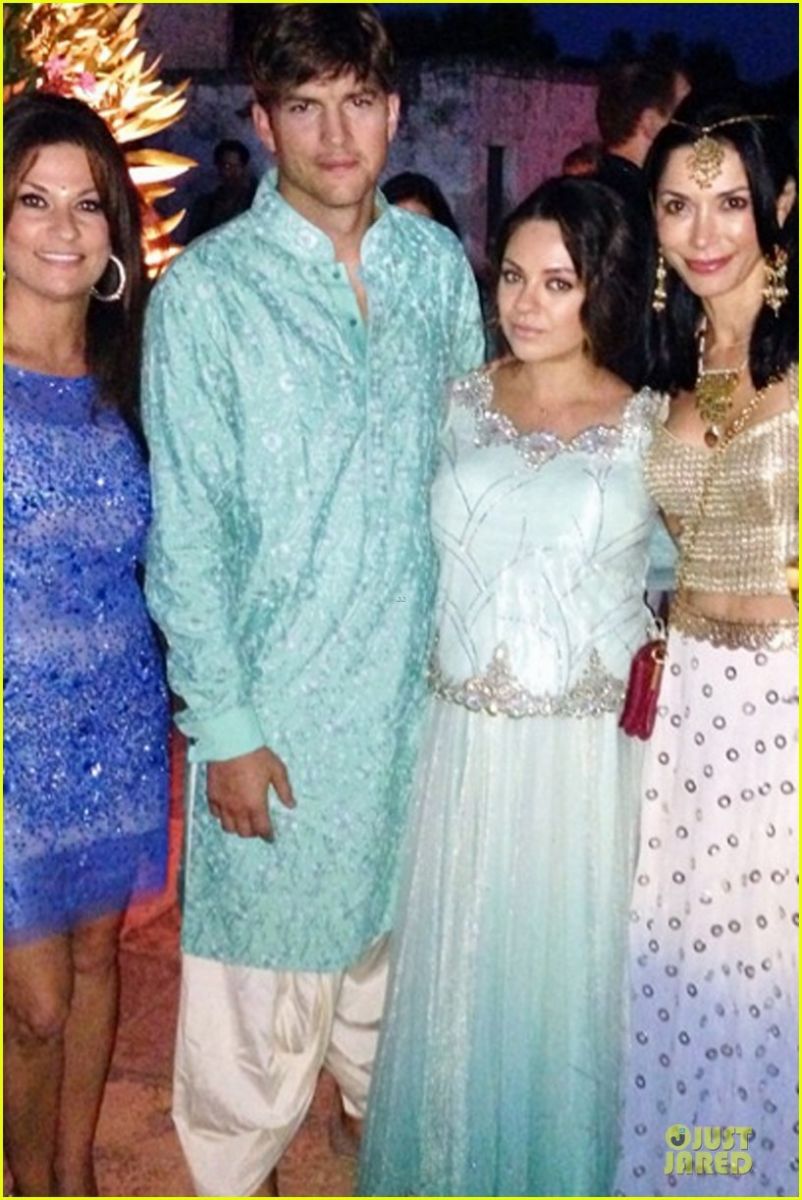36-летний актер и его невеста были приглашены в качестве гостей на свадьбу своих друзей. Торжество проходило в индийском стиле, и голливудские знаменитости принарядились соответственно: Эштон был в красном тюрбане и голубой сорочке, а Мила – в стилизованном белом платье.