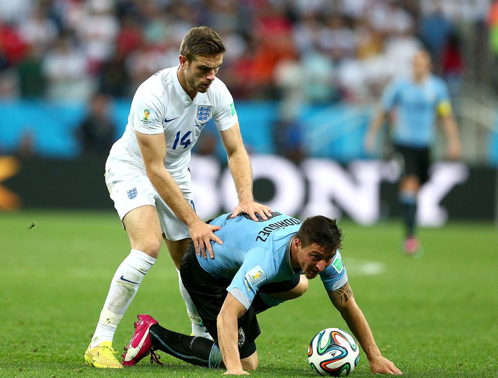 Англичанин Джордан Хендерсон внезапно окунулся в детские воспоминания и принял Кристиана Родригеса (Уругвай) за маленького миленького пони.