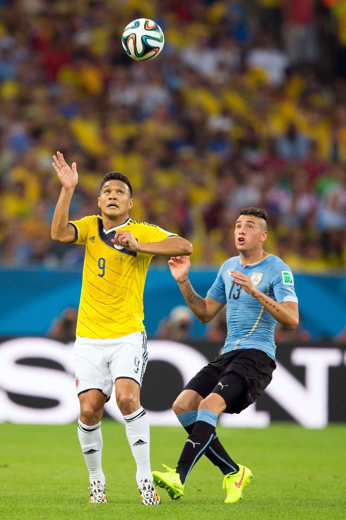 «Футбол, волейбол – одна зараза», - подумал колумбиец Теофило Гутьеррес и решил пасануть мяч рукой. Чем, видимо, нехило удивил уругвайца Хосе Хименеса.