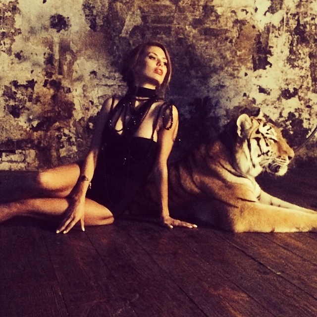 В этот раз Боня приняла участие в красивом фотосете для модного бренда одежды. Работа получилась немного опасной, так как, по задумке рекламного агентства, в съемках должен были принимать участие тигр. Но Вика отлично справилась с заданием и снимки получились отличные.