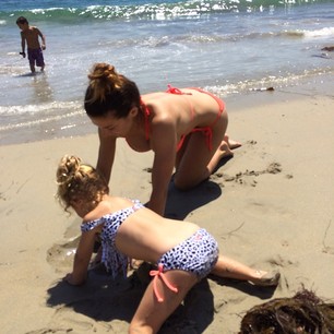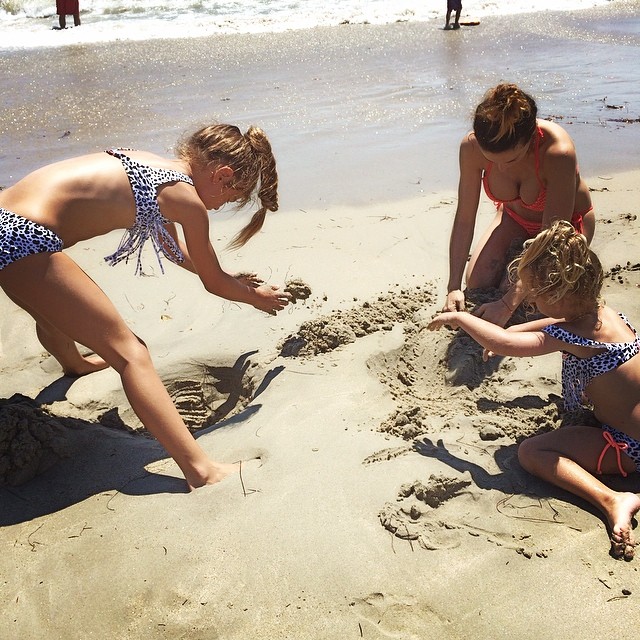 Сегодня Анна Седокова опубликовала снимки, сделанные на знаменитом пляже Лагуна-Бич в Калифорнии. На фото Аня вместе с дочками строит песочный замок.