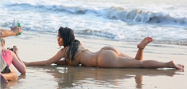 Знаменитая скандалистка Ким Кардашян, которая отличается своими пышными формами, летом обязательно публикует фото в бикини.