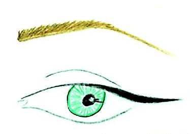 Начинай линию с середины глаза и выводи за внешний уголок в направлении виска. Заканчивай стрелку на уровне окончания брови. Подобная техника макияжа подходит и в случае близко посаженных глаз.