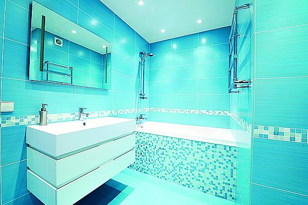 Керамическая плитка должна быть тоже глянцевой и светлой. Мебель выбирай простую, с прямыми линиями и светлого цвета.