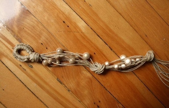 Возьми жемчужины и насади их на 8 нитей, а 4 нити оставьте пустыми. Попытайтесь чередовать маленькие, средние и пустые последовательности, чтобы создать интересный образ.