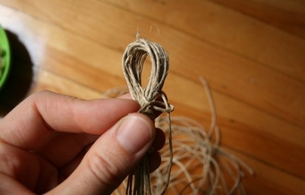 Возьми седьмую нить и начинай обвязывать её вокруг петли.