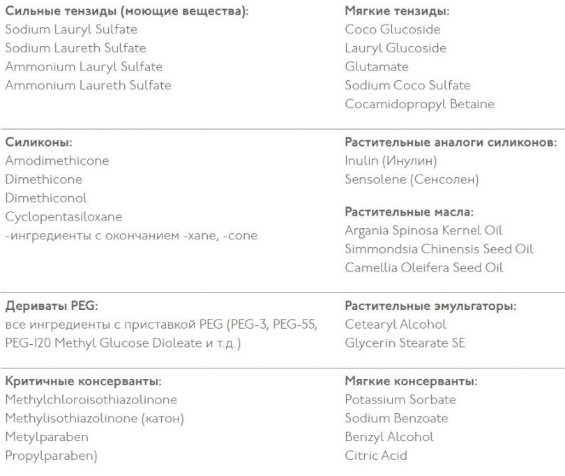 Другие варианты нежелательных компонентов (слева) и их безопасные аналоги (справа):