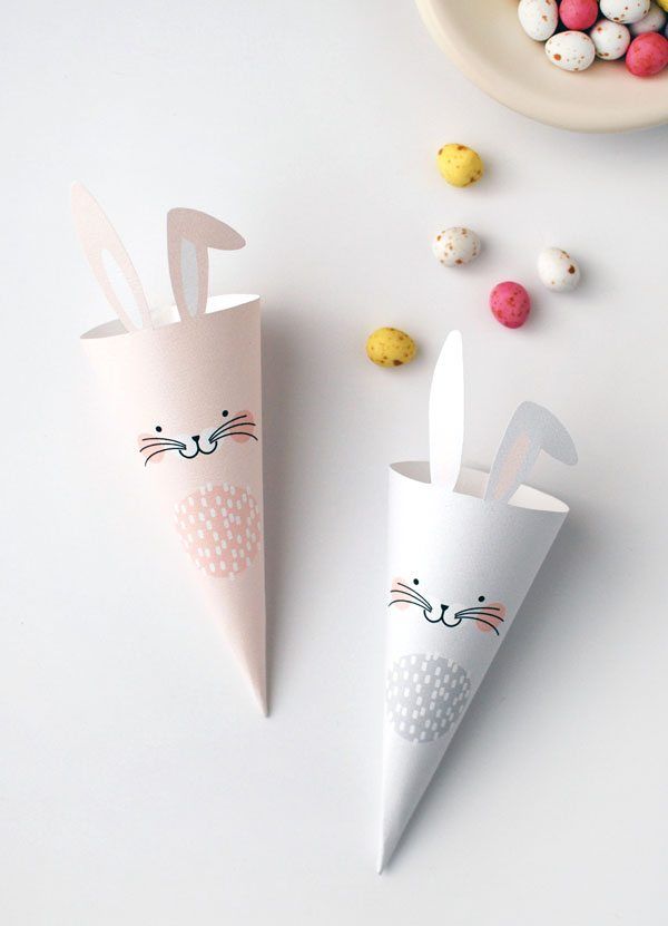 Очень простой декор, который ты можешь сделать вместе с детьми. Для стаканчиков-зайчиков тебе надо нарисовать большой круг и разделить его на 4 части (а-ля знак BMW). Из каждой этой части скрути «стаканчик», дорисуй глазки, мордочку, лапки, отдельно вырежи ушки и наклей их над мордочкой, можно приклеить хвостик с обратной стороны.