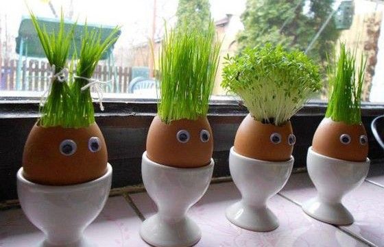Еще одно применение яичной скорлупы. Тут можно даже сильно ее не высушивать, растения будут получать дополнительные питательные вещества из скорлупы. Просто насыпь немного земли внутрь и посей любую микрозелень, кресс-салат, укроп, пшеницу или ячмень.