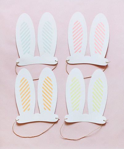 Очень милый аксессуар порадует и детей, и взрослых. Вырежь основной контур ушек из плотной бумаги, внутри нарисуй или приклей цветную серединку, по края привяжи веревочку или резинку - и вуаля!