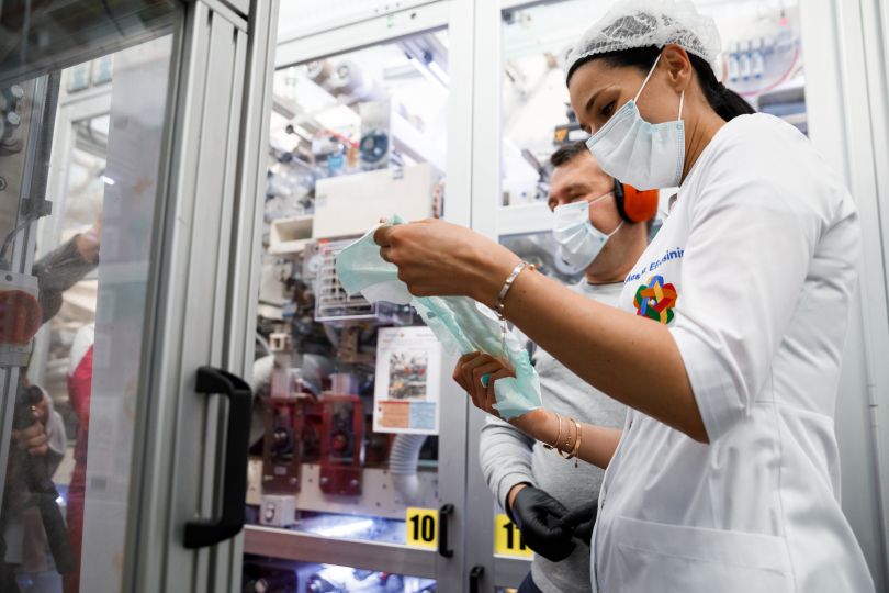Первую партию подгузников корпорация направила на благотворительность. Один из фондов, которому было передано больше 3000 упаковок подгузников, - «Твоя опора», а глава его попечительского совета - Маша Ефросинина. Она приехала на завод корпорации в Днепре, чтобы посмотреть, как производятся украинские подгузники и познакомиться с Bambik.